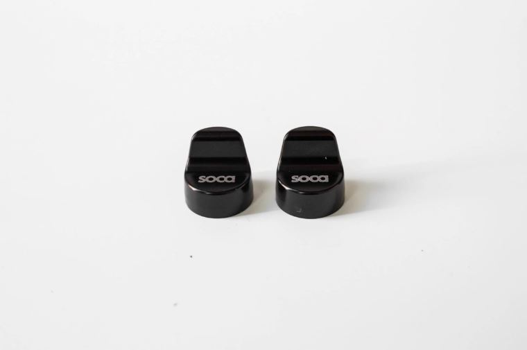 Schöne Abdeckkappen von SOCA für die offenen Spiegellöcher im Lenkkopf nach der Umrüstung auf Lenkerendenspiegel. Die Abdeckungen für die Spiegellöcher werden aus Aluminium CNC gefräst und anschließend eloxiert. Für die Montage werden die beiliegenden Schrauben im Spiegelgewinde befestigt, dort wird dann mittels der Gummiklemmung am Schraubenkopf die Abdeckung installiert.