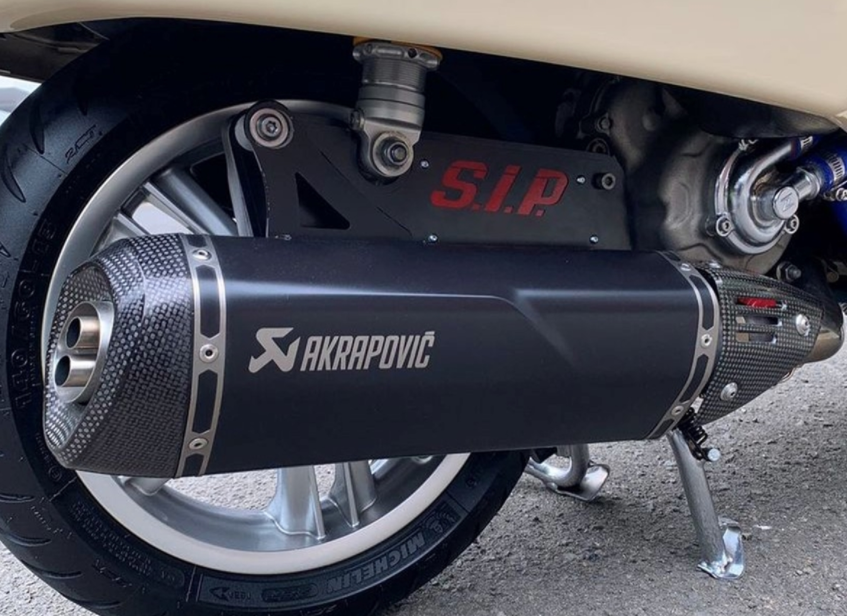 Produktinformationen "Auspuffblende Schwingarm für Vespa GTS/GTS Super/GTV/GT 60/GT/GT L, Edelstahl schwarz"