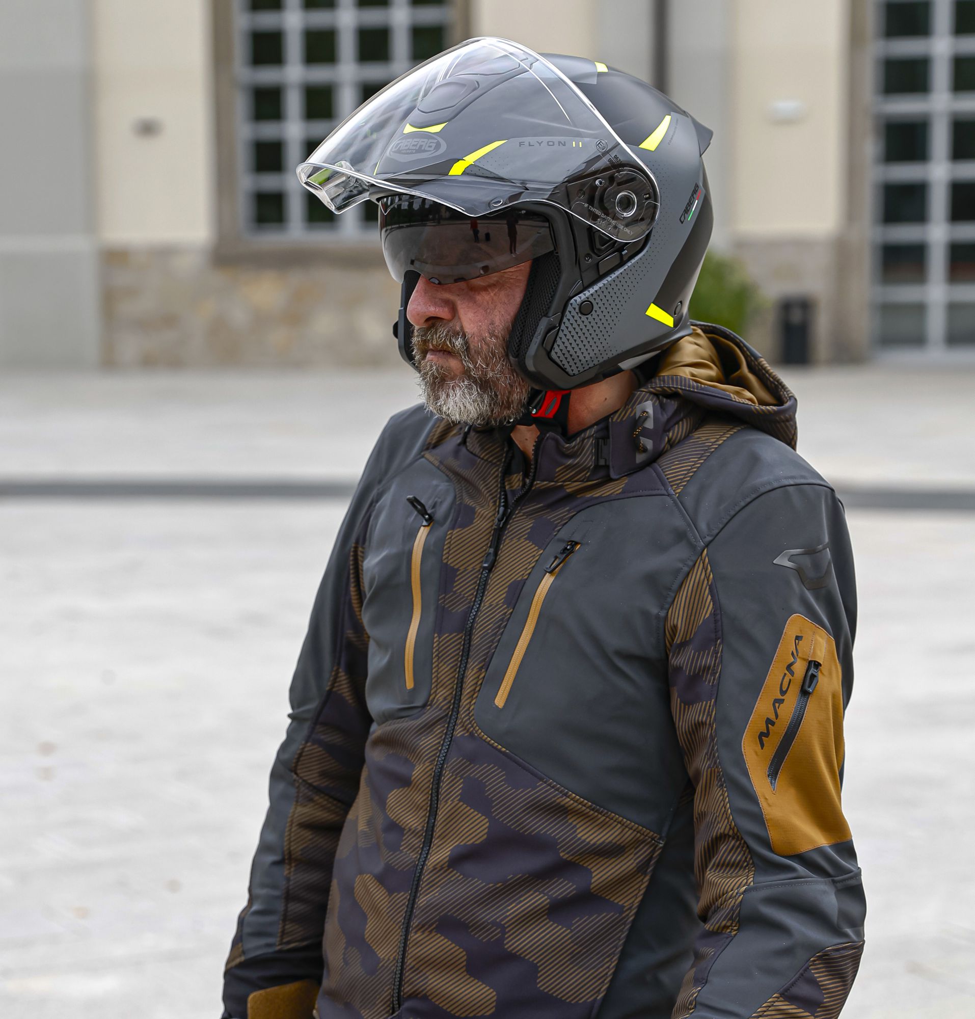 Produktinformationen "Caberg Helm Flyon II Boss matt-schwarz/grau-fluo-gelb"