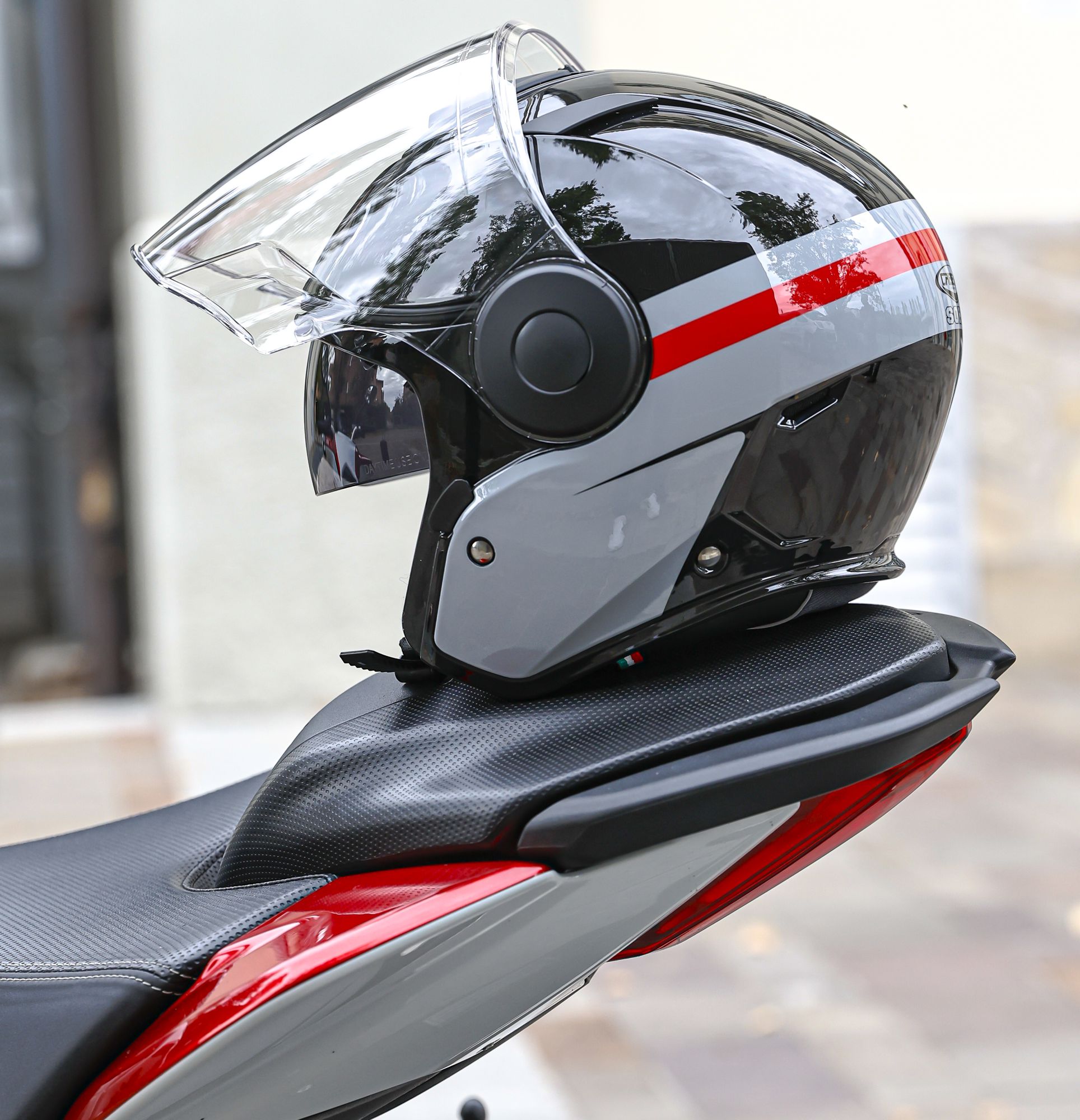 Der Caberg Soho Jethelm mit dem Dekor Zephyr in den Farben schwarz/grau-rot verfügt über die folgenden Eigenschaften: