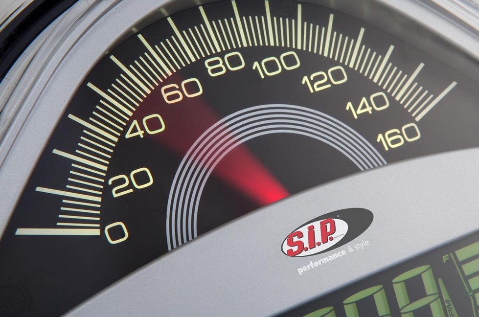 Der SIP Tacho / Drehzahlmesser ersetzt den serienmäßig sehr spärlich ausgerüsteten Tacho gegen ein echtes Multifunktionsgerät. Der Tachometer besticht durch seine große analoge Anzeige für Geschwindigkeit (bis 160kmh) und Drehzahl (bis 16.000 U/Min). Die Tachonadel zeigt demnach entweder Drehzahl oder Geschwindigkeit an. Im unteren digitalen Display können wahlweise 18 Funktionen angezeigt werden. Diese lassen sich per Knopfdruck umschalten. Neben den Standardfunktionen wie analoge / digitale Geschwindigkeitsanzeige, Tages & Gesamtkilometer, Temperatur verfügt der Tacho über einen analogen & digitalen Drehzahlmesser, digitale Benzin- und Temperaturanzeige, Beschleunigungsmesser für Strecken und Geschwindigkeitsmessung, Durchschnittsgeschwindigkeit und viele weitere Features (siehe Funktionsliste). Die Hintergrundbeleuchtung kann aus acht verschiedenen Farben gewählt werden. Die Helligkeit lässt sich zudem gesondert regeln. Vor jedem Neustart vollzieht das Instrument einen kompletten Selftest. Die Geschwindigkeitsabnahme erfolgt wie original über den im Kabelbaum integrierte Geschwindigkeitsabnahme oder kann über einen digitalen Geschwindigkeitssensor übertragen werden. Die passenden Sensoren sind im Zubehör erhältlich. Ein Kabelsatz zum Anschluss am Fahrzeug ist im Lieferumfang enthalten. Dieser wird zwischen Tacho und Kabelbaum angeschlossen. Alles ohne löten, einfach und unkompliziert.