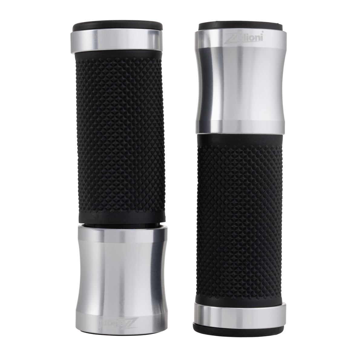 Ergonomischer Griff mit gummierter Handfläche. Alu Caps mit lasergraviertem ZELIONI Logo. Enden offen für Montage von Lenkerendengewichten/Spiegeln.