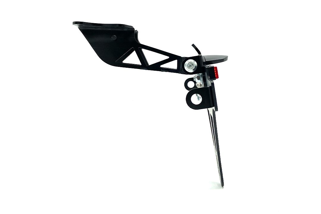 Kennzeichenhalter für Yamaha MT-10 / MT-10 SP / MTN1000, Typ RN45, ab Modelljahr 2016-, und Typ RN78 ab Modelljahr 2022-. Zur Verwendung mit Zubehör-Blinker (Gewinde M8 und M10. Kennzeichenbeleuchtung und Rückstrahler inklusive.