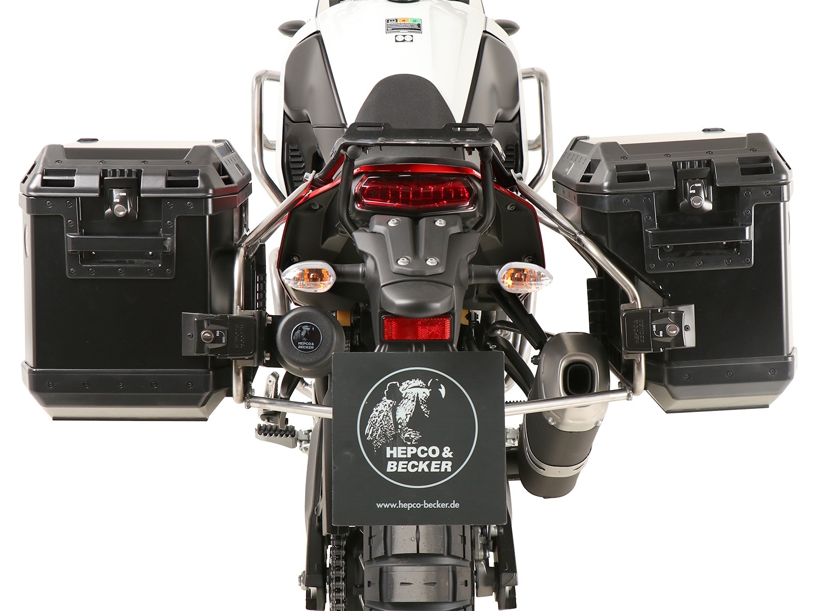 - Set bestehend aus einem beidseitigem Edelstahl Kofferträger in Kombination mit Xplorer Cutout Koffern