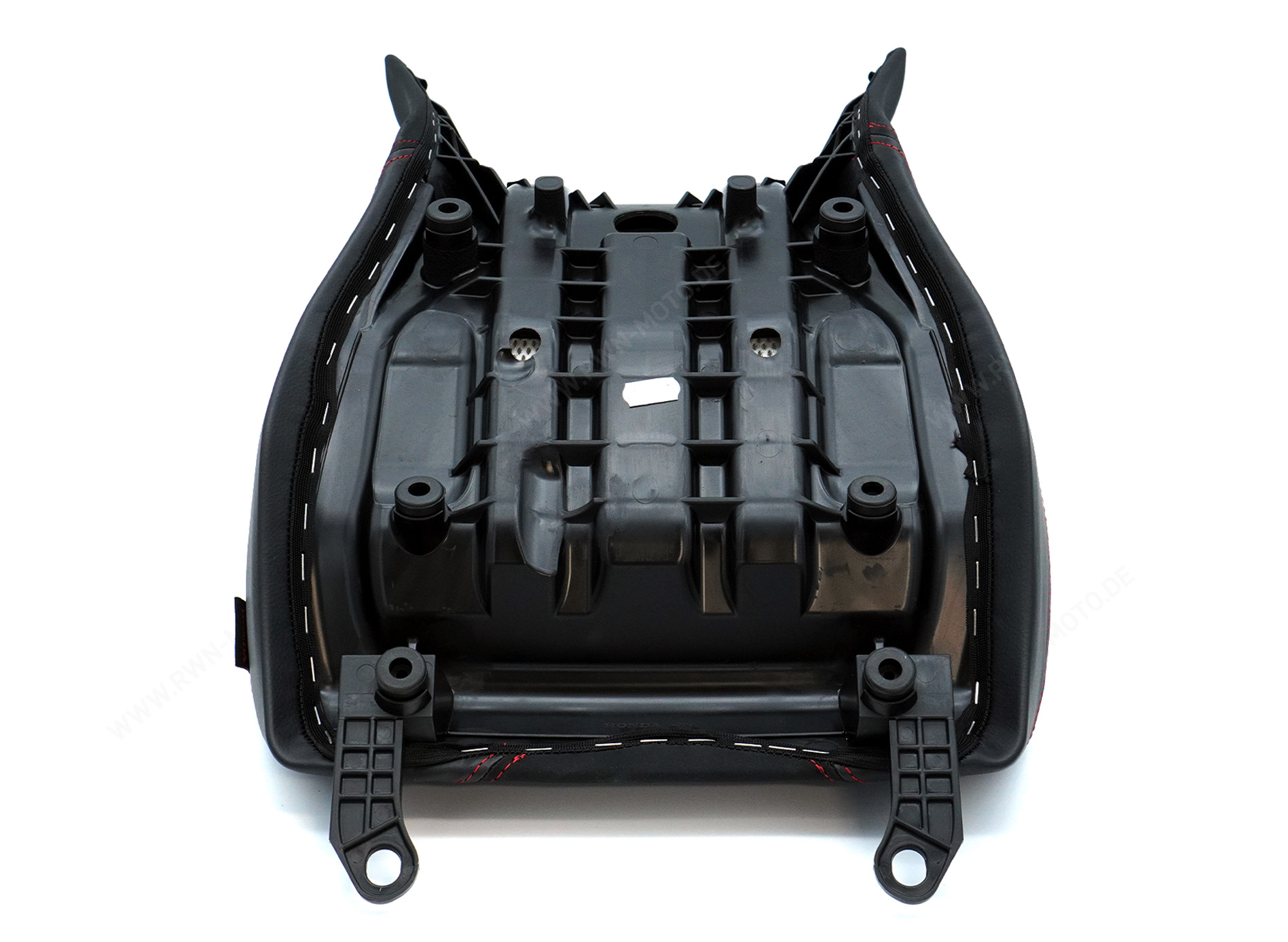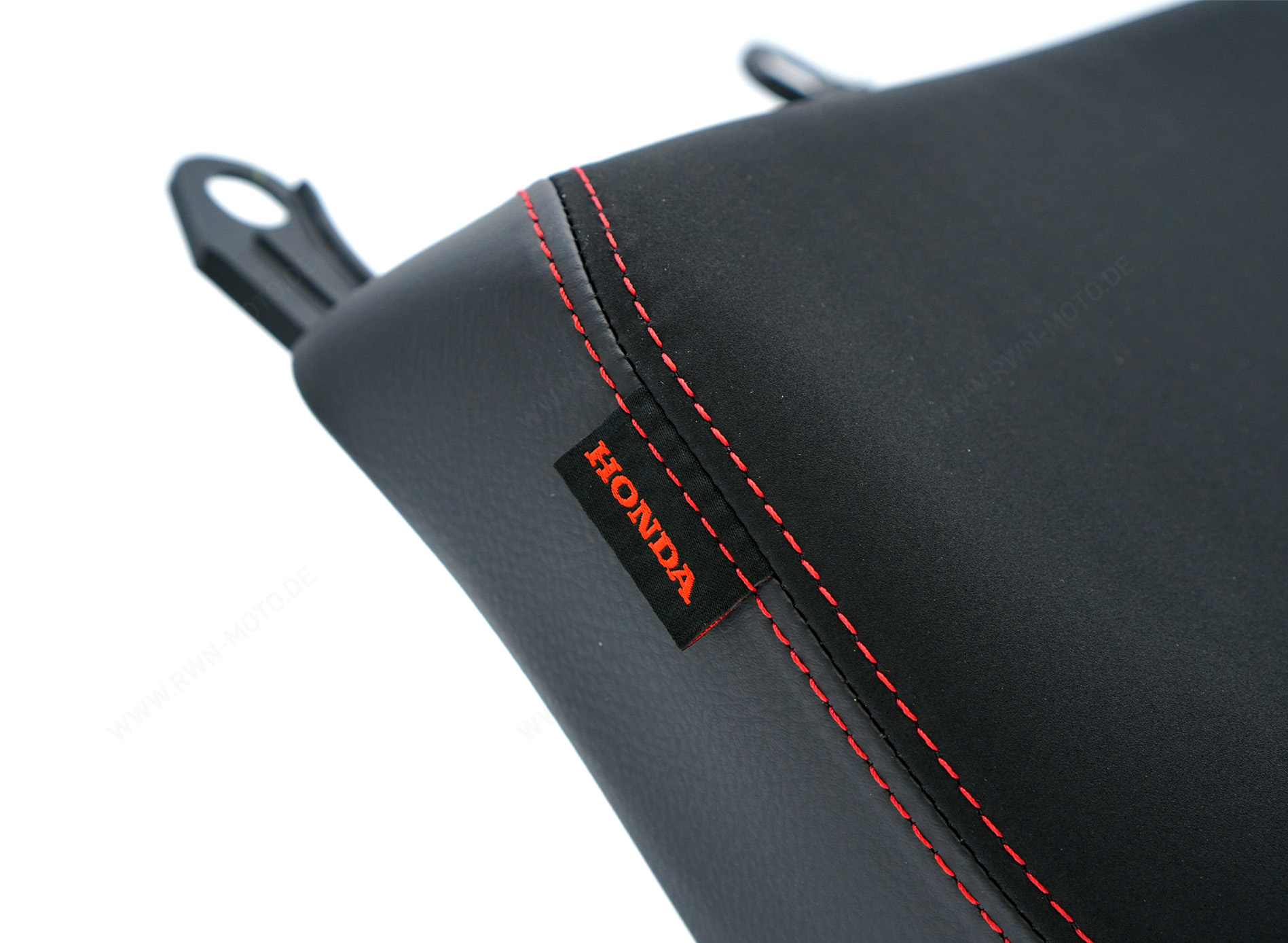 Der Sitz verfügt über das offizielle Honda Logo und ist mit abgesetzten roten Nähten verziert. Verschiedene Materialien sorgen für einen hochwertigen Look und die 15 mm verstärkte Polsterung bietet dir ein angenehmes Sitzgefühl.