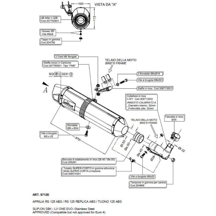 Produktinformationen "LeoVince Auspuffanlage SBK LV One Evo 2, Edelstahl für Aprilia RS4 125 (Bj.11-16)"