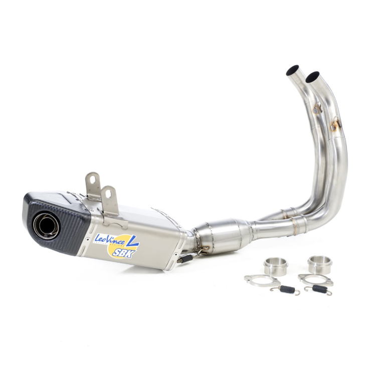 LeoVince UNDERBODY Full, ideal um das Design Ihres Fahrzeugs uneingeschränkt zu unterstreichen und den Gewichtsschwerpunkt Ihres Bikes auf die Straßenmitte zu verlegen. Die Durchmesser der Rohre und der Schalldämpfer insgesamt in seiner Bauart sorgen für eine perfekte Kalibrierung des Motors. Die Endkappe der LeoVince UNDERBODY ist so konzipiert, dass die Abgase am Reifen vorbei geleitet werden so dass dieser nicht mit der Hitzeentwicklung in Berührung kommen kann. Die LeoVince UNDERBODY ist vollständig, inklusive der Halterungen, aus AISI 304 Edelstahl gefertigt. Die Durchmesser der Rohre und der Schalldämpfer insgesamt in seiner Bauart sorgen für eine perfekte Kalibrierung des Motors, weitere Modifikationen sind nicht notwendig. Um den aktuell erwünschten "Titan-Look" zu erhalten, wurde der Außenmantel der LeoVince Underbody Edelstahl-sandbestrahlt.