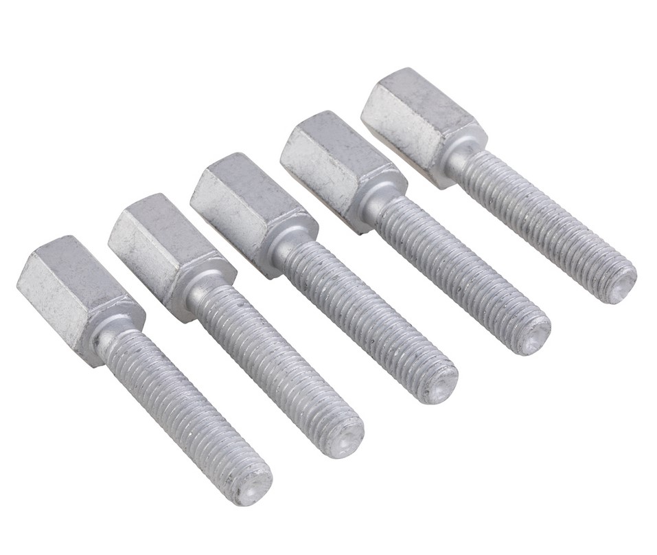 • Felge mit den fünf neuen Radmuttern (Schrauben mit Sechskantkopf, Innengewinde) und den fünf M8 Unterlegscheiben fixieren