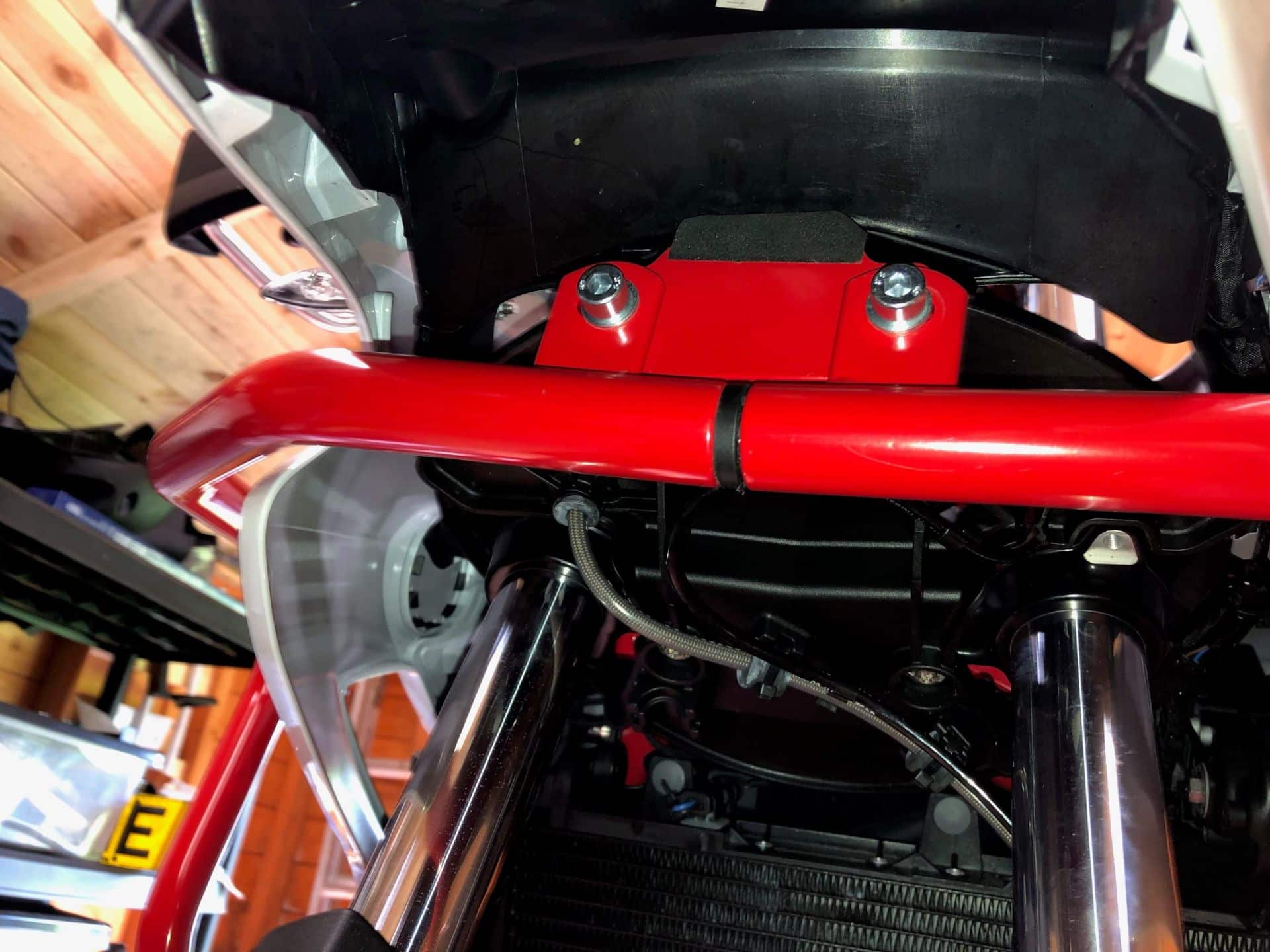 On Top eignen sich Motorradschutzbügel unglaublich gut zum sicheren Festzurren deiner Maschine auf einem Anhänger, falls du sie mal transportieren musst.