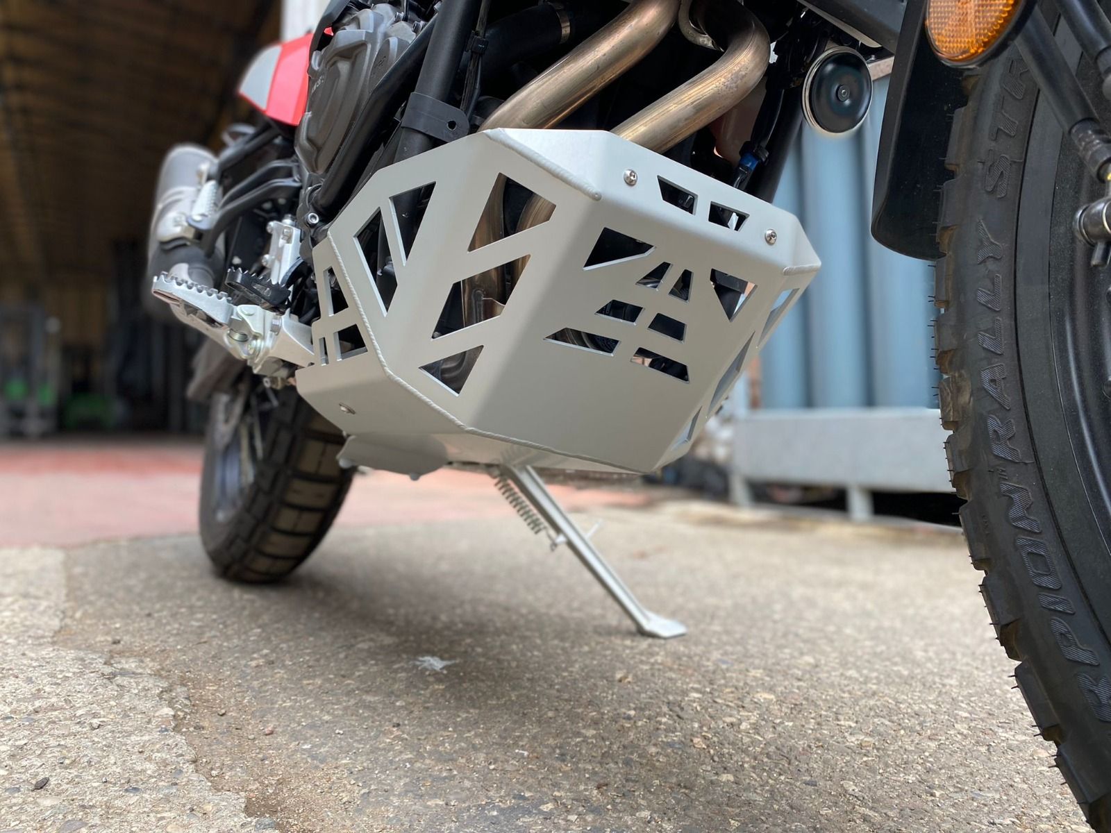 Das verwendete Material ist hochwertiges Magnesium-Aluminium mit einer Dicke von 4 mm, was Leichtigkeit und extremen Schutz für Motor und Rahmen gewährleistet. Isotta teilintegrierter Sturzbügel ist der einzige, der eine stoßdämpfende Gummi-Einlage integriert hat, die bei starken Stößen im Offroad-Einsatz den hinteren Stoßdämpfer schützt. Darüber hinaus ist die Befestigung gelocht, um Vibrationen zu eliminieren und kinetische Energie im Falle eines Aufpralls zu verteilen.