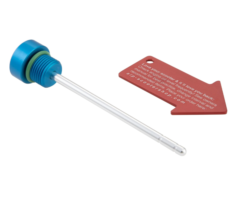 Die Öleinfüllschraube / Messstab SIP PORDOI für das Motoröl wird aus hochwertigem Aluminium CNC gefräst. Durch das schlichte Design sehen die Öleinfüllschrauben an jedem Fahrzeug schön aus und fügen sich gut in das Gesamtbild der Vespa ein. Am Messstab ist die Skala entsprechend der originalen Einfüllschrauben ausgerichtet, der passende Dichtring ist bereits angebracht.Oft werden die serienmäßigen Einfüllschrauben bei parkenden Fahrzeugen entwendet. Um Unbefugten die Arbeit zu erschweren, haben wir an ein kleines Sicherheitsplus gedacht und liefern ein spezielles Montage-Tool mit den Einfüllschrauben welches praktischer Weise auch als Schlüsselanhänger genutzt werden kann.