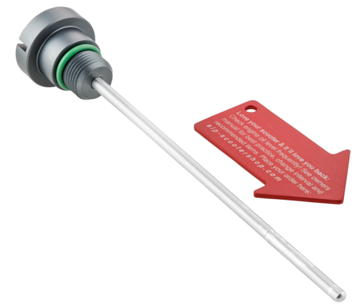 Die Öleinfüllschraube / Messstab SIP PORDOI für das Motoröl wird aus hochwertigem Aluminium CNC gefräst. Durch das schlichte Design sehen die Öleinfüllschrauben an jedem Fahrzeug schön aus und fügen sich gut in das Gesamtbild der Vespa ein. Am Messstab ist die Skala entsprechend der originalen Einfüllschrauben ausgerichtet, der passende Dichtring ist bereits angebracht. Oft werden die serienmäßigen Einfüllschrauben bei parkenden Fahrzeugen entwendet. Um Unbefugten die Arbeit zu erschweren, hat SIP an ein kleines Sicherheitsplus gedacht und liefert ein spezielles Montage-Tool mit den Einfüllschrauben welches praktischer Weise auch als Schlüsselanhänger genutzt werden kann.