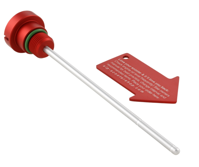 Die Öleinfüllschraube / Messstab SIP PORDOI für das Motoröl wird aus hochwertigem Aluminium CNC gefräst. Durch das schlichte Design sehen die Öleinfüllschrauben an jedem Fahrzeug schön aus und fügen sich gut in das Gesamtbild der Vespa ein. Am Messstab ist die Skala entsprechend der originalen Einfüllschrauben ausgerichtet, der passende Dichtring ist bereits angebracht. Oft werden die serienmäßigen Einfüllschrauben bei parkenden Fahrzeugen entwendet. Um Unbefugten die Arbeit zu erschweren, hat SIP an ein kleines Sicherheitsplus gedacht und liefert ein spezielles Montage-Tool mit den Einfüllschrauben welches praktischer Weise auch als Schlüsselanhänger genutzt werden kann.