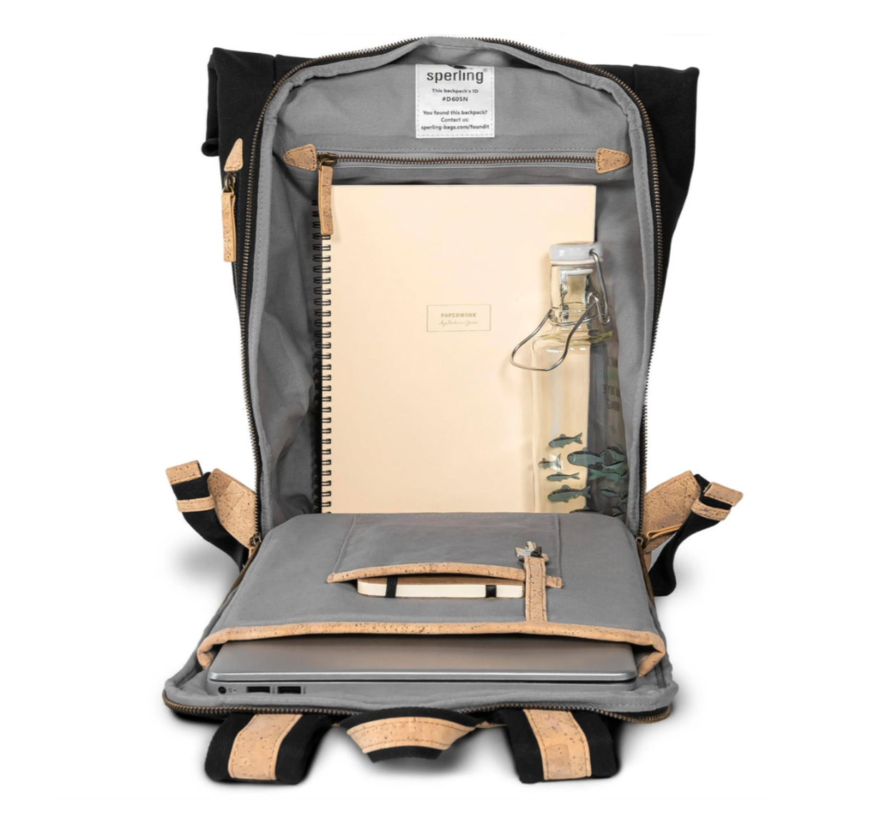 Der neue Sperling Rucksack für Vespa- und Motorroller Fahrer vereint Funktionalität und Nachhaltigkeit mit seinem robusten und wasserabweisenden Design. Hergestellt aus Bio-Baumwoll-Twill und veganem Naturkork, bietet er Schutz und Stil in jedem Wetter und jeder Situation. Der Rucksack verfügt über eine hochwertige Polsterung am Rücken, den Schultergurten und am Boden, um höchsten Tragekomfort zu gewährleisten. Ein allseitig gepolstertes Laptopfach bietet sicheren Platz für Geräte bis 15,6" oder 26,5cm Breite.