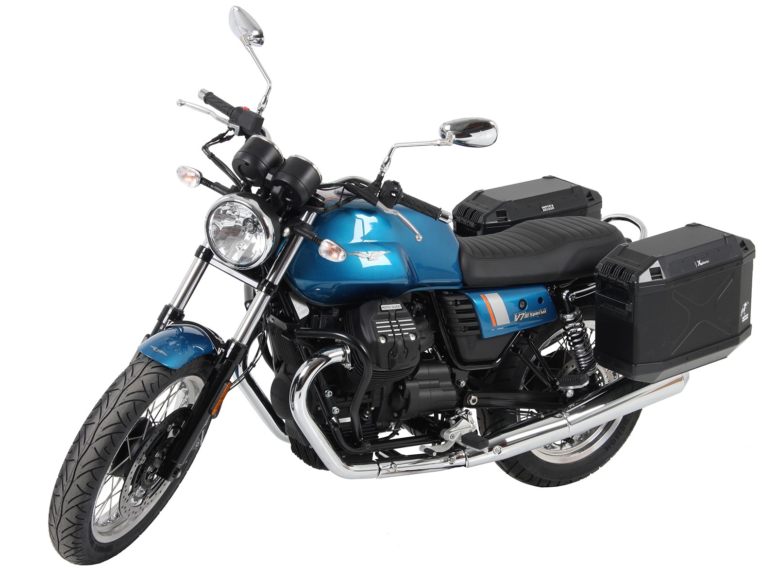 Die Seitenkofferträger von Hepco&Becker können meist ohne Probleme mit einer Rohrgepäckbrücke oder anderen Heckträgern aus unserem Haus kombiniert werden. Beachten Sie dazu bitte die Anbauanleitung. Bild zeigt schwarze Version.