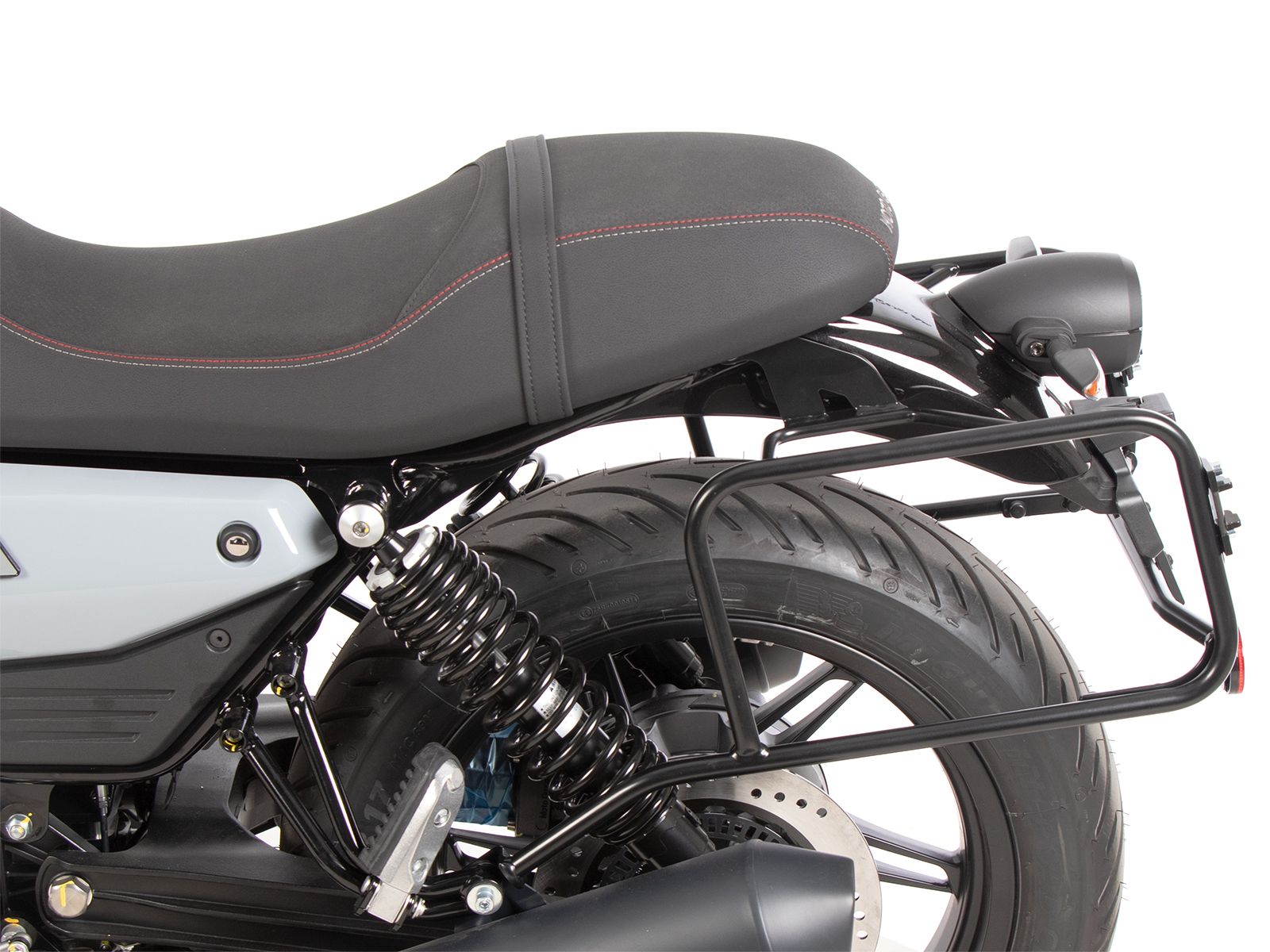 Die festverschraubten Seitenkofferträger von Hepco&Becker werden fest mit dem Motorradrahmen verbunden. An diesen Träger passen nahezu alle Touring Seitenkoffersysteme von Hepco&Becker. Die Koffer werden mithilfe eines Metallhalteschlosses am Träger diebstahlsicher befestigt. Dazu wird zusätzlich ein Schlossadapter benötigt. Dieser befindet sich normalerweise im Lieferumfang der Seitenkoffer. Dieser Schlossadapter wird hinten rechts und links am Träger verschraubt und bieten die Aufnahme für das Kofferhalteschloss.