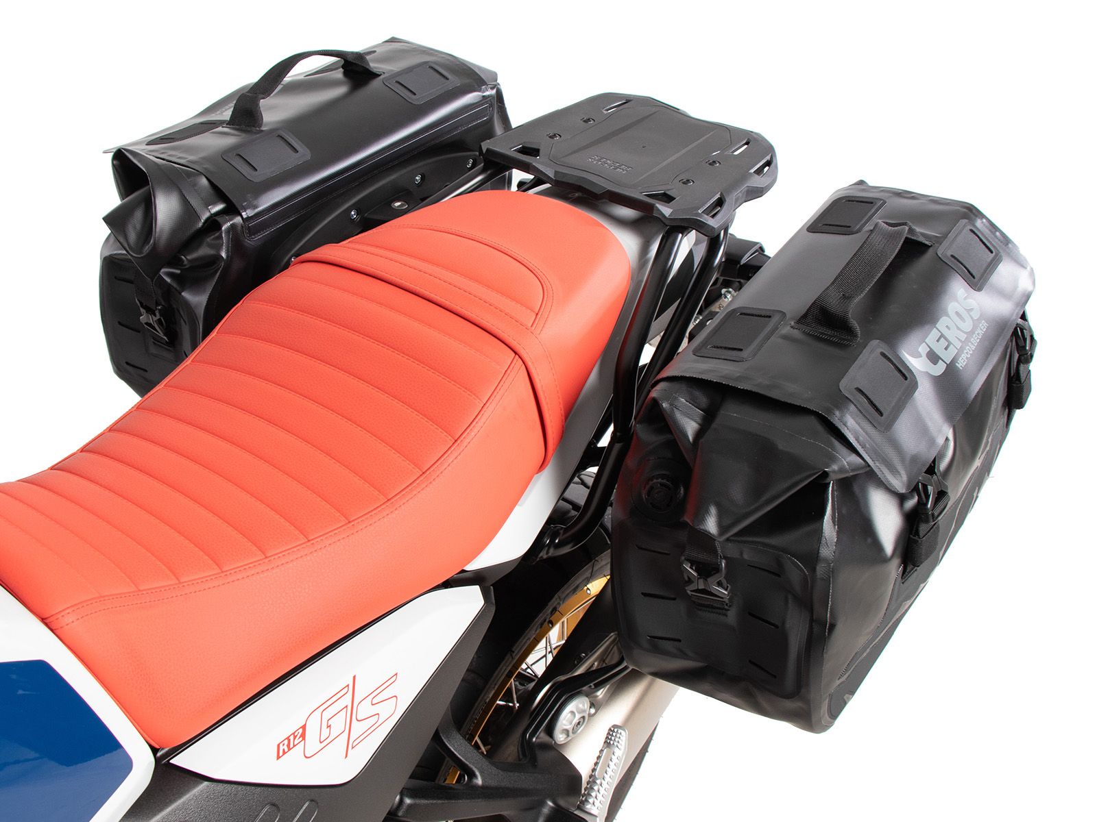 In Anlehnung an die Robustheit eines Panzernashorns, hat Hepco&Becker die CEROS Seitentaschen gezielt für den Offroad-Einsatz entwickelt – durch extrem strapazierfähiges Mehrlagengewebe sowie deren spezielle Verarbeitungstechnologien sind diese Taschen im Adventurebereich super komfortabel und absolut wasser-, schlamm- und staubdicht.