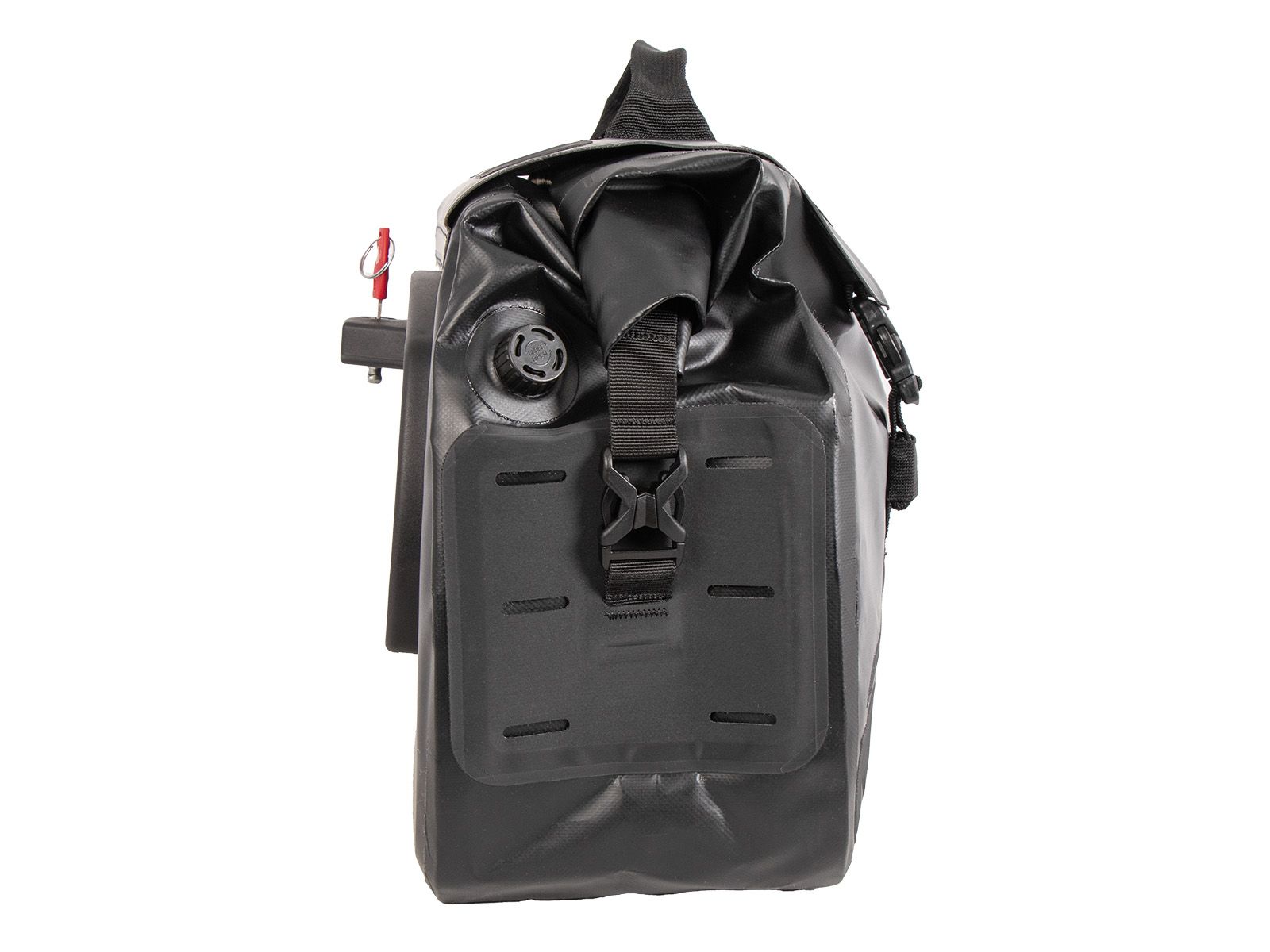 In Kombination mit dem C-Bow System sitzen die Taschen selbst im harten Gelände bombenfest. Der sichere Rolltoppverschluss gibt dem Eindringen von Wasser, Staub, Schlamm und anderem Dreck keine Chance. Beim Packen hilft das seitliche Kompressionsventil um unnötig aufgebauschte Taschen zu komprimieren und Volume und Fläche zu sparen - mit praktischem Drehverschluss. Und nicht zuletzt kannst du dank des MOLLE-System viele weitere Dinge an die Außenseite anbringen und verzurren, z.B. weitere Taschen, Gadgets und weitere nützliche Gegenstände für Unterwegs.