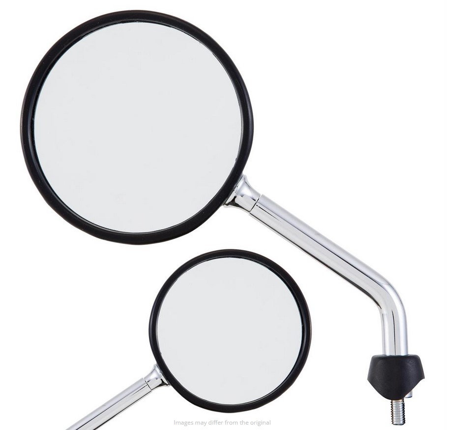Die Spiegel Shorty sind der Orignalform der Vespa Spiegel gehalten, haben aber einen wesentlich kürzeren Spiegelarm. Mit ca. 5-6cm weniger Hebellänge fügt er sich optimal ins Gesamtbild der Vespa ein. Durch das Kugelgelenk kann der Spiegelkopf angepasst werden, das Sichtfeld wird trotz des kürzeren Hebels nicht beeinträchtigt. Der Spiegel verfügt über eine E-Nummer und darf problemlos im Straßenverkehr gefahren werden. Die Lieferung erfolgt inkl. Gummikappen und Kontermuttern. Zur Montage der Spiegel muss ggf. ein passender Spiegeladapter mitbestellt werden. Vor der Bestellung bitte Gewinde von Spiegel und Adapter prüfen. (M8/M10)