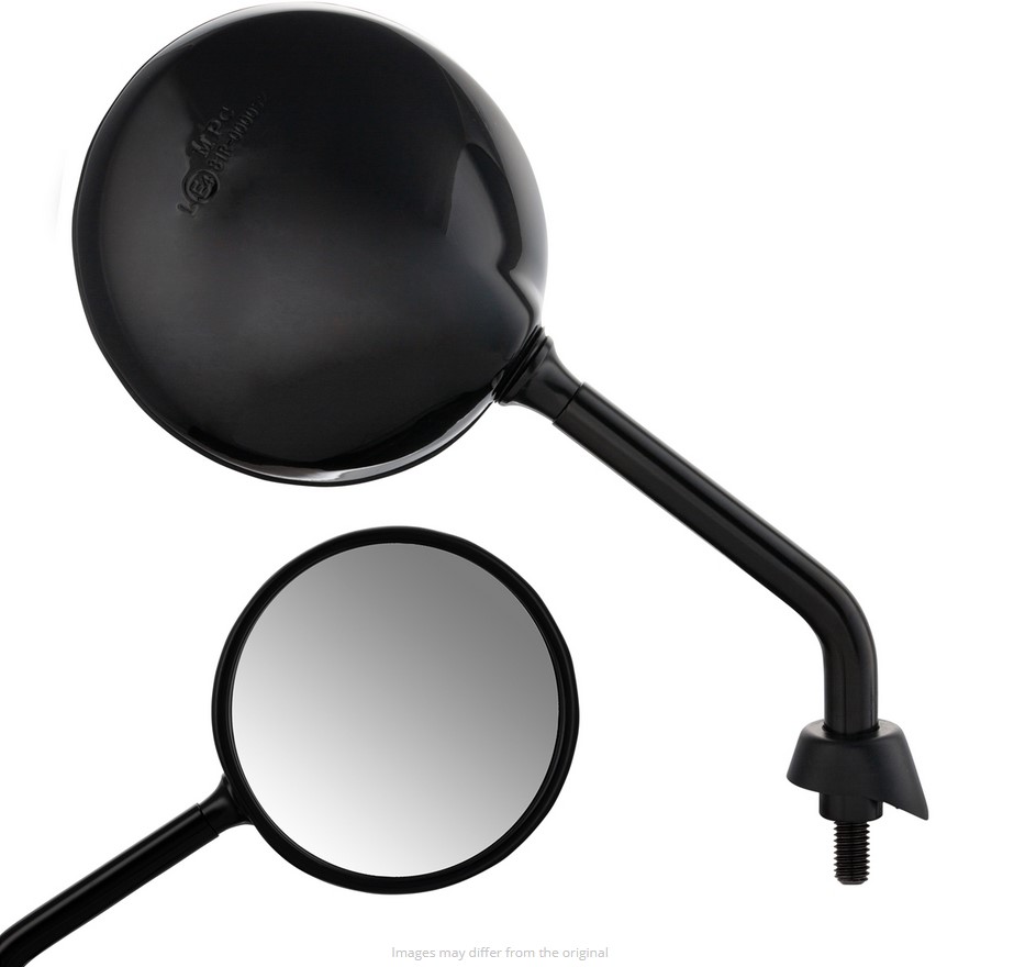 Die Spiegel Shorty sind der Orignalform der Vespa Spiegel gehalten, haben aber einen wesentlich kürzeren Spiegelarm. Mit ca. 5-6cm weniger Hebellänge fügt er sich optimal ins Gesamtbild der Vespa ein. Durch das Kugelgelenk kann der Spiegelkopf angepasst werden, das Sichtfeld wird trotz des kürzeren Hebels nicht beeinträchtigt. Der Spiegel verfügt über eine E-Nummer und darf problemlos im Straßenverkehr gefahren werden. Die Lieferung erfolgt inkl. Gummikappen und Kontermuttern.