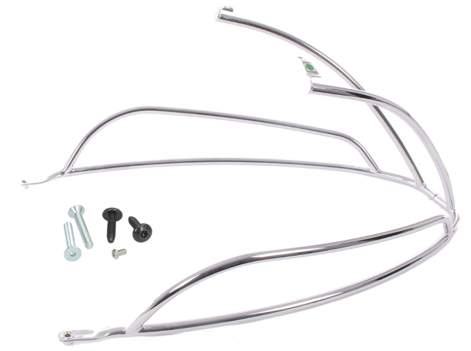 Um den unverwechselbaren Charakter der Vespa zu betonen, werden seit jeher Chromblenden eingesetzt. Der hintere Schutzbügel verbindet elegantes Design mit Schutz und trägt zum einzigartigen Vespa-Charakter bei, schützt Karosserieelemente gegen Stöße und Schläge.
