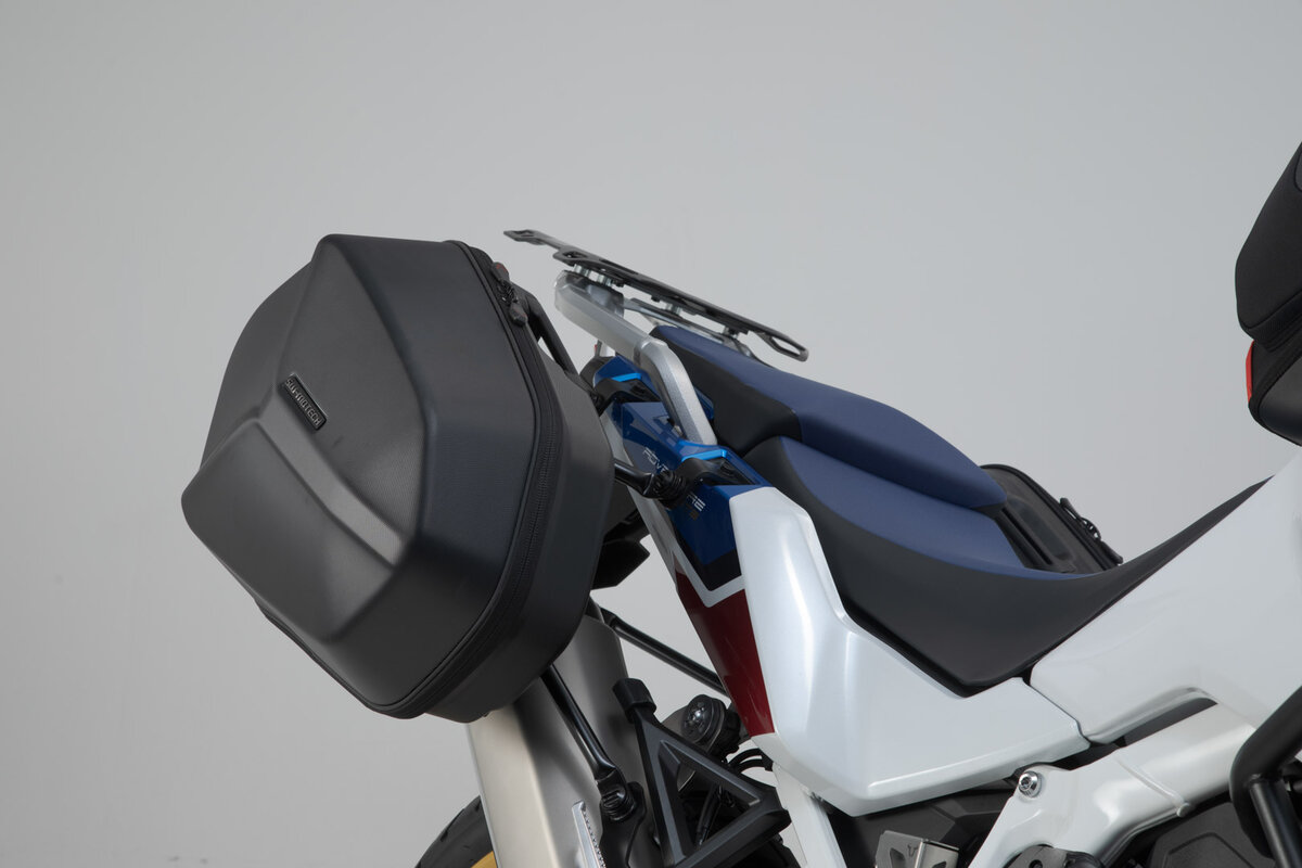 SW-MOTECH baut das AERO ABS Seitenkoffer-System passend für die Honda Africa Twin CRF1100L Adventure Sports mit den modellspezifischen PRO Seitenträgern, die extrem belastbar sind. Die PRO Seitenträger lassen sich in Verbindung mit einer Akrapovic Slip-On Auspuffanlage montieren.
