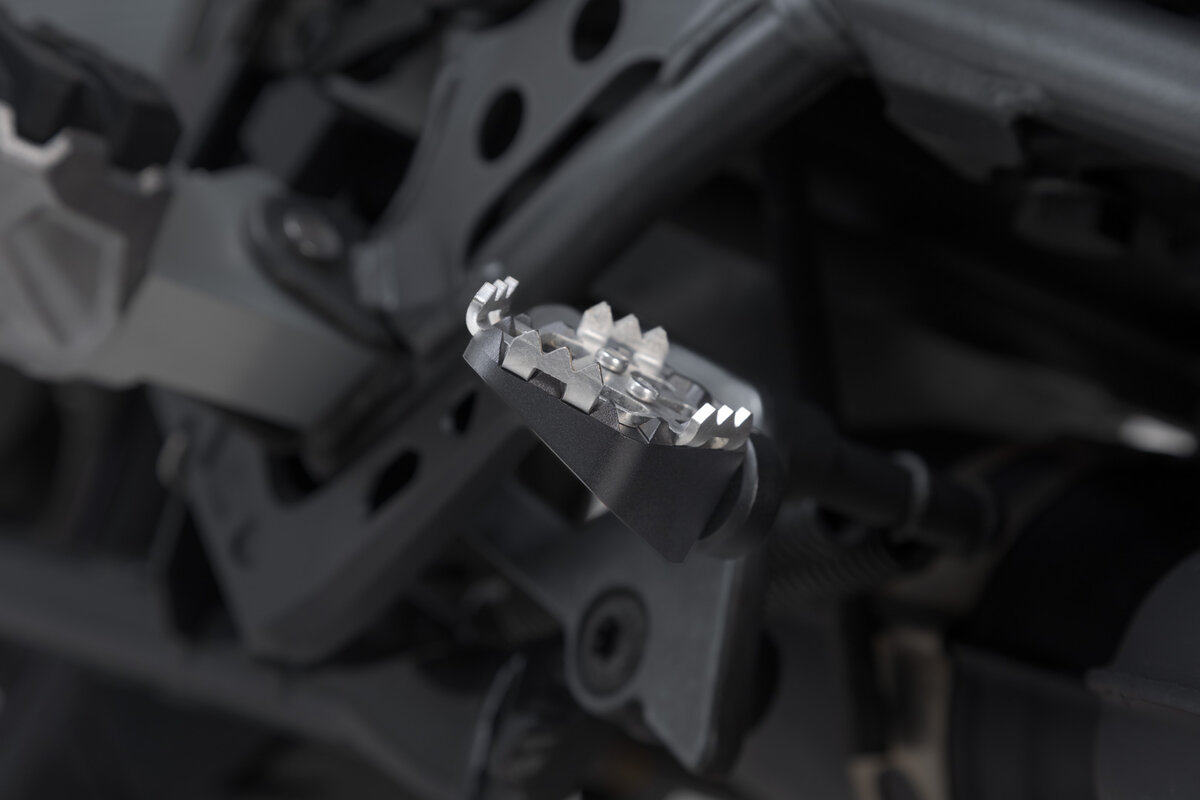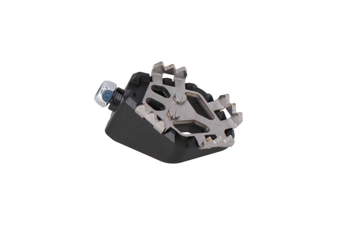 Mit diesem Zusatzteil vergrößert du die Auftrittsfläche des Fußbremshebels und verbesserst dadurch das Handling bei Fahrten im Gelände. Der Adventure-Auftritt lässt sich um 5 Millimeter nach oben einstellen, dadurch erreichst du auch in stehender Fahrposition die Bremse und bist du sicherer offroad unterwegs.