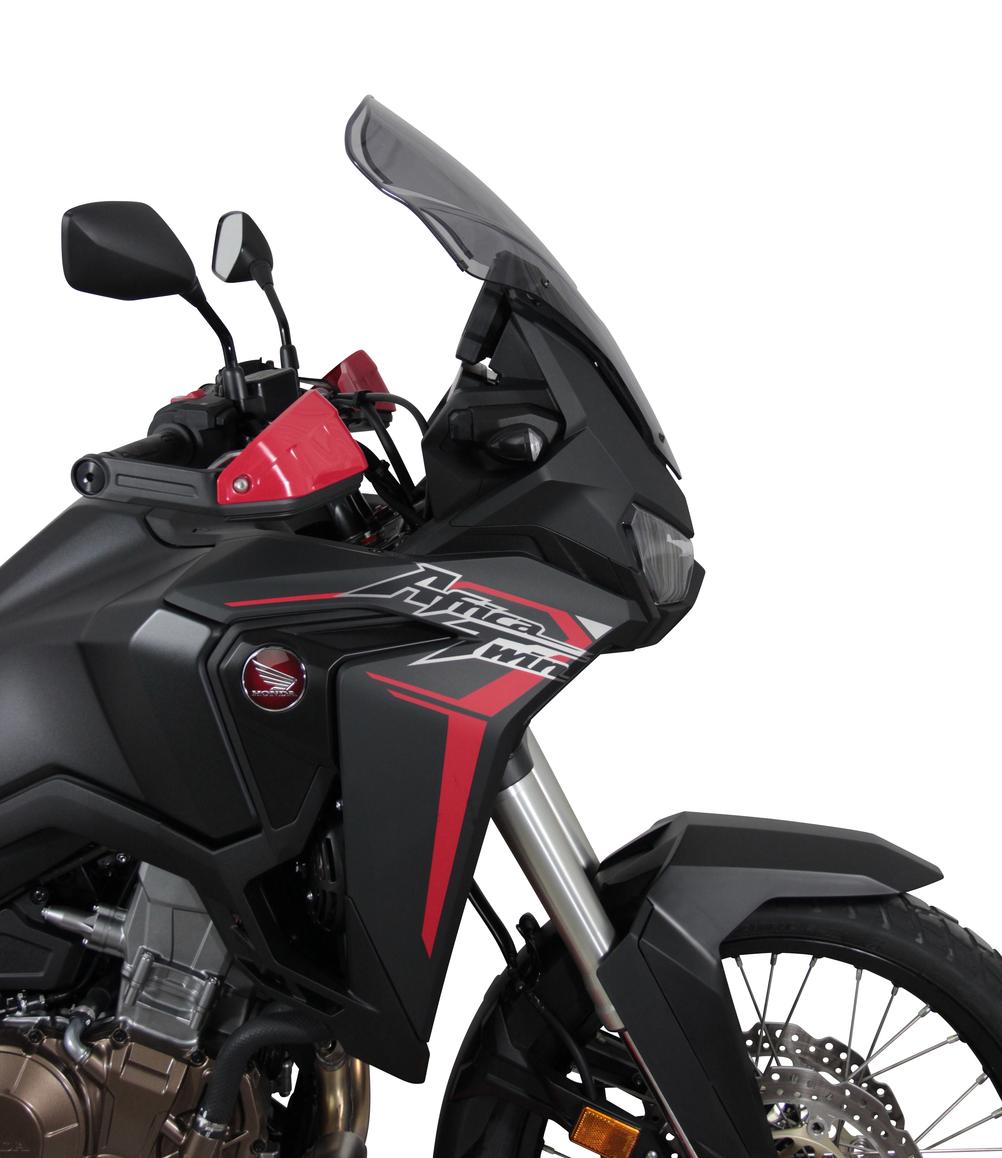 Die bisher schon sehr erfolgreiche Africa Twin wurde noch mehr verbessert: sie ist nun etwas leichter, gleichzeitig stärker und mit allerlei Elektronik ausgestattet. Die große MRA-Tourenscheibe (TM) bietet mit ihren 51cm guten Windschutz und macht das Motorrad tourentauglich. Die Tourenscheibe ist in Farblos und Rauchgrau erhältlich.