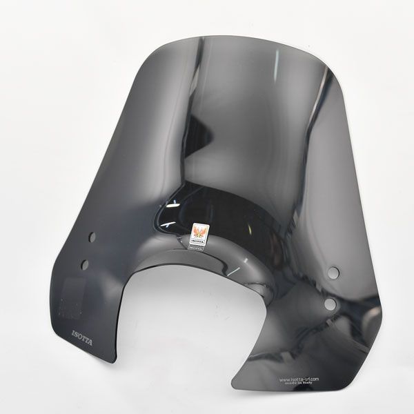 Das von Isotta hergestellte Windschild wurde entwickelt, um dem Fahrer ein optimales Erlebnis zu bieten, mit vergrößerten Abmessungen im Vergleich zum Original. Das Material besteht aus erstklassigem Plexiglas (PMMA), das aus einer nationalen oder europäischen Lieferkette stammt, um höchste Qualität und Rückverfolgbarkeit unserer ausschließlich in Italien hergestellten Produkte sicherzustellen. Dieses Material behält seine Transparenz und seinen Glanz im Laufe der Zeit bei.