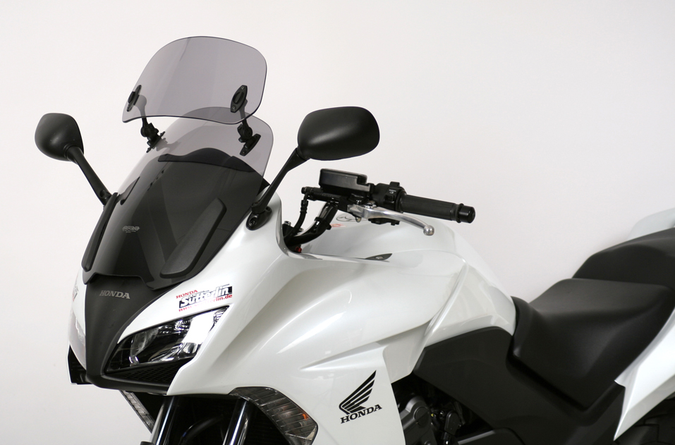 Die X-creen-Scheibe besteht aus einer Basis-Scheibe und dem vielfach verstellbaren X-creen-Spoiler. Der Lieferumfang beinhaltet zwei Gelenk-Versionen: Einfachgelenk „S“ und Doppelgelenk “D“, die wahlweise montiert werden können. Variante „S“ ist für Kunden zu empfehlen, die mit der Scheibenhöhe gut zurechtkommen und nur den Spoilerwinkel verstellen möchten. Kunden, denen die Variante „S“ zu hoch oder zu niedrig ist, können mit der Variante „D“ die Höhe des Spoilers um 110mm verstellen und dabei auch den Spoilerwinkel, unabhängig von der Höhe, sowie den Abstand zur Basisscheibe verstellen. Dadurch lässt sich X-Creen optimal auf die individuellen Bedürfnisse des Fahrers.