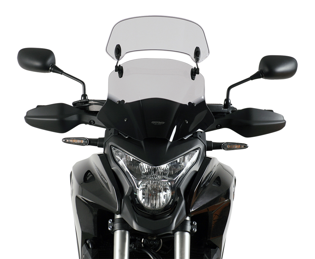 Die X-creen-Scheibe besteht aus einer Basis-Scheibe und dem vielfach verstellbaren X-creen-Spoiler. Der Lieferumfang beinhaltet zwei Gelenk-Versionen: Einfachgelenk „S“ und Doppelgelenk “D“, die wahlweise montiert werden können. Variante „S“ ist für Kunden zu empfehlen, die mit der Scheibenhöhe gut zurechtkommen und nur den Spoilerwinkel verstellen möchten. Kunden, denen die Variante „S“ zu hoch oder zu niedrig ist, können mit der Variante „D“ die Höhe des Spoilers um 110mm verstellen und dabei auch den Spoilerwinkel, unabhängig von der Höhe, sowie den Abstand zur Basisscheibe verstellen. Dadurch lässt sich X-Creen optimal auf die individuellen Bedürfnisse des Fahrers.