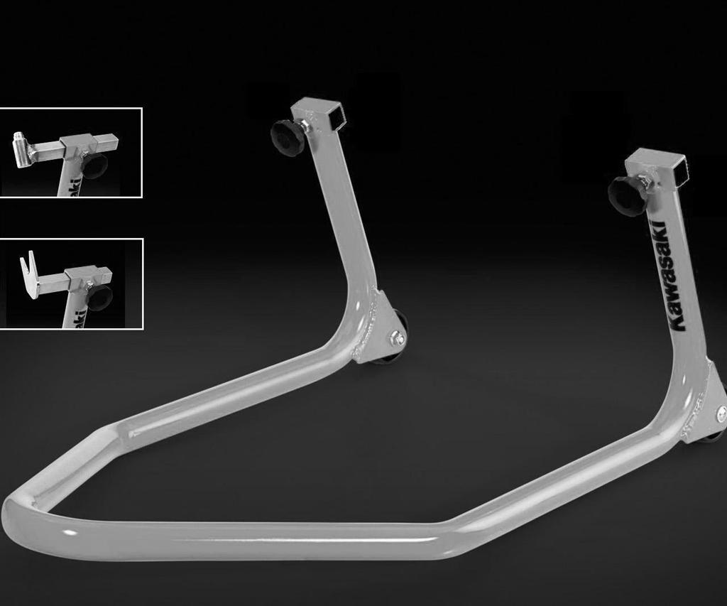 Der Kawasaki Paddock-Ständer ist für die meisten Straßenmotorräder geeignet. Muss mit Vorderradgabel-Stiften oder Y-Gabeln und Bobbins kombiniert werden.